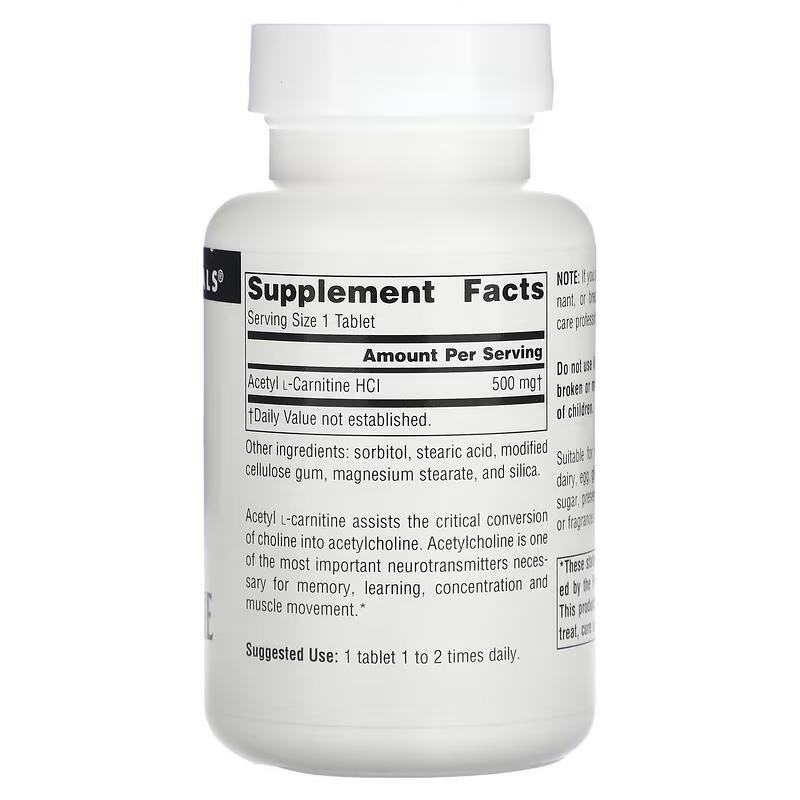 Ацетил-L-карнитин, Acetyl-L-Carnitine, Source Naturals, 500 мг, 60 таблеток