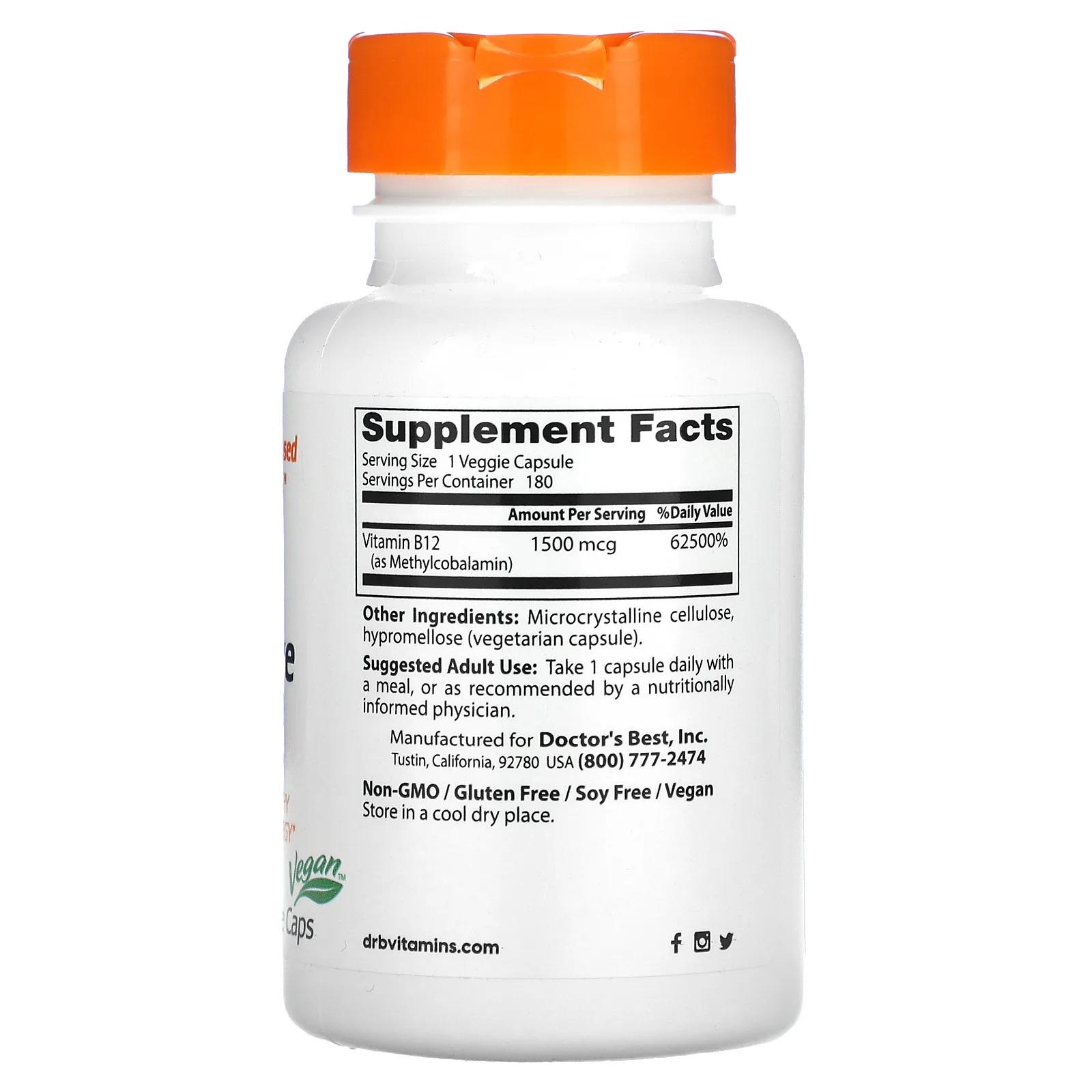 Активный витамин B12, Fully Active B12, Doctor's Best, 1500 мкг, 180 вегетарианских капсул