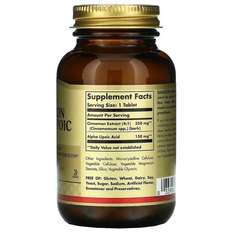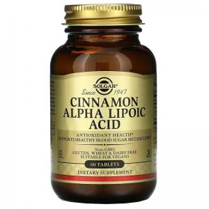 Альфа-липоевая кислота и корица, Cinnamon Alpha-Lipoic Acid, Solgar, 60 таблеток