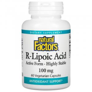 Альфа-липоевая кислота, R-Lipoic Acid, Natural Factors, 100 мг, 60 веганских капсул