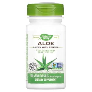Латекс алоэ с фенхелем, Aloe Latex with Fennel, Nature's Way, 140 мг, 100 веганских капсул