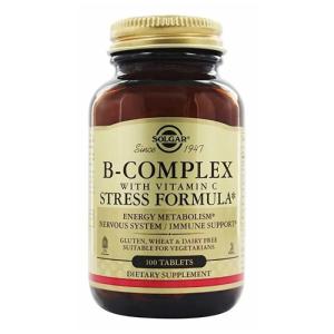 Комплекс витаминов В с витамином C, стресс формула, B-Complex with Vitamin C Stress Formula, Solgar, 100 таблеток