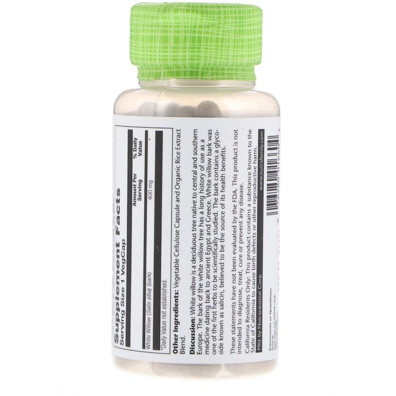 Белая ива, White Willow Bark, Solaray, 400 мг, 100 капсул