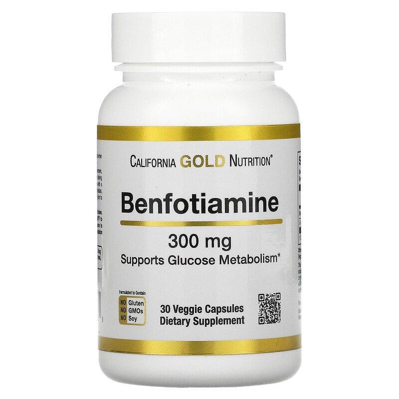 Бенфотиамин, Benfotiamine, California Gold Nutrition, 300 мг, 30 растительных капсул