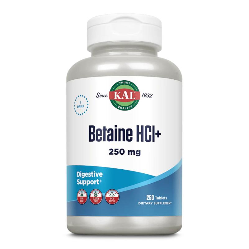 Бетаин HCl +, Betaine HCl+, KAL, 250 таблеток