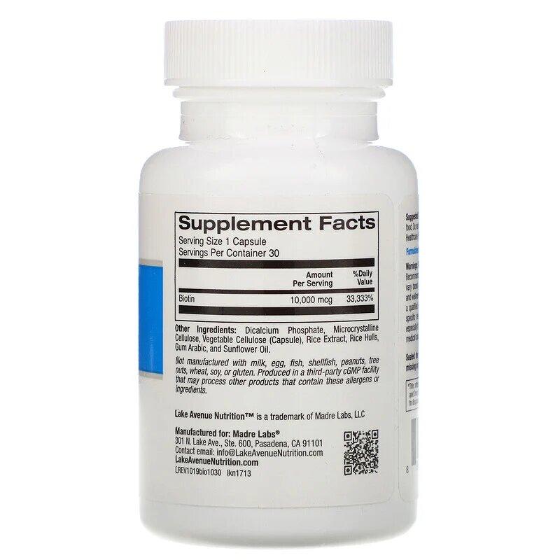 Биотин, Biotin, Lake Avenue Nutrition, 10000 мкг, 30 капсул