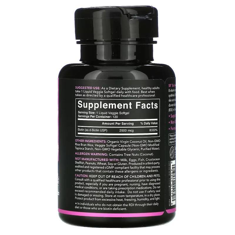Биотин является важным витамином для производства кератина. Биотин, добавка, полученная из кокосового масла первого отжима, упрощает получение достаточного количества витамина B. Biotin with Coconut Oil от бренда Sports Research - это витамин, который хорошо сочетается с кокосовым маслом. Роль биотина в росте и развитии клеток, а также его вклад в метаболизм липидов, углеводов, глюкозы и аминокислот хорошо известны. Витамин B7 - это то, что нужно купить и принимать, для поддержания здоровья организма.
