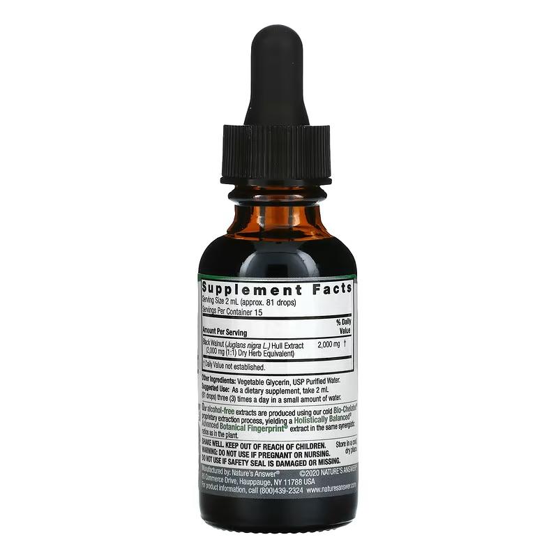 Скорлупа черного ореха, жидкий экстракт, без спирта, Black Walnut Hull Fluid extract Alcohol free, Nature's Answer, 2000 мг, 30 мл