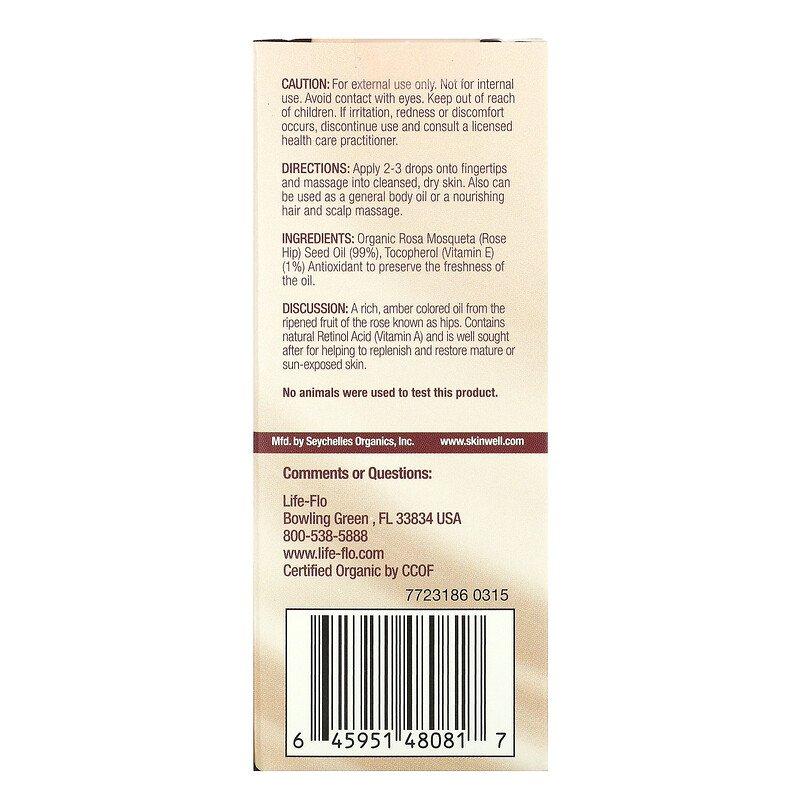 Чистое масло семян шиповника, уход за кожей, Pure Rosehip Seed Oil, Life-flo, 30 мл