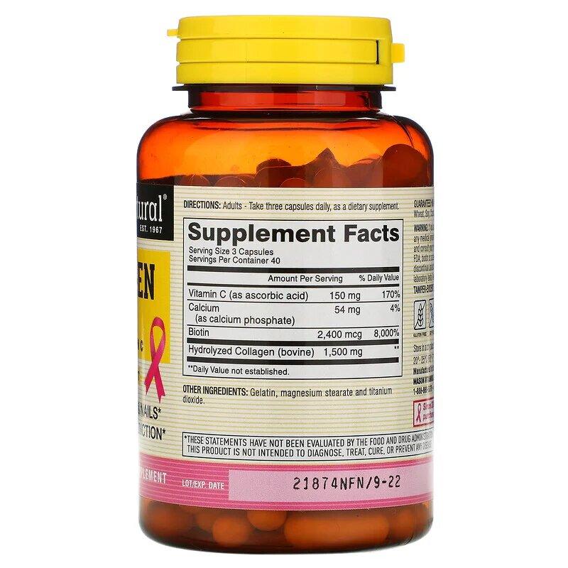 Коллаген 1500 с витамином С, Collagen 1500 with Vitamin C, Mason Natural, 120 капсул