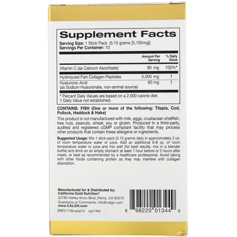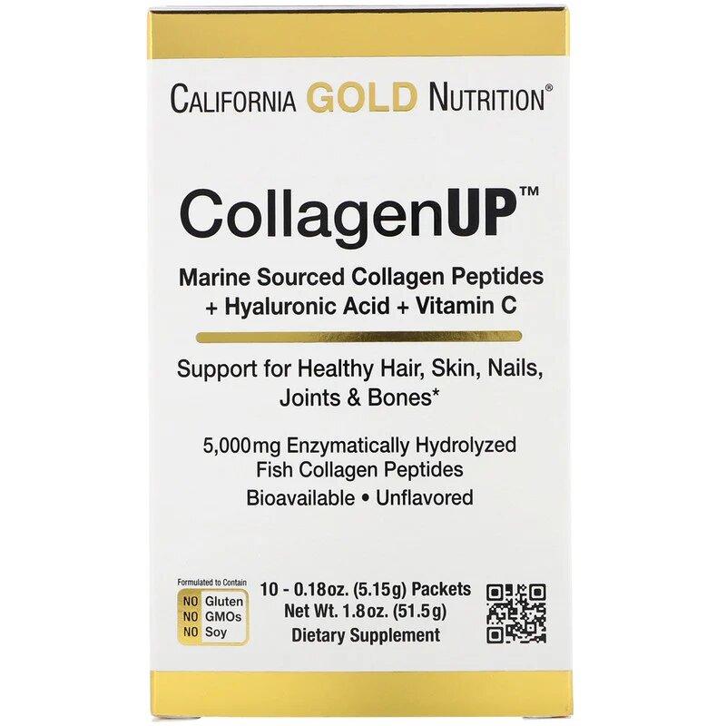 CollagenUP, морской коллаген с гиалуроновой кислотой и витамином С, без запаха, California Gold Nutrition, 10 пакетов, 0,18 унции (5,15 г) каждый