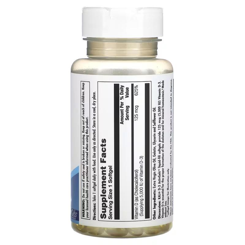 Витамин D-3, KAL, 125 мкг (5000 МЕ), 90 мягких таблеток