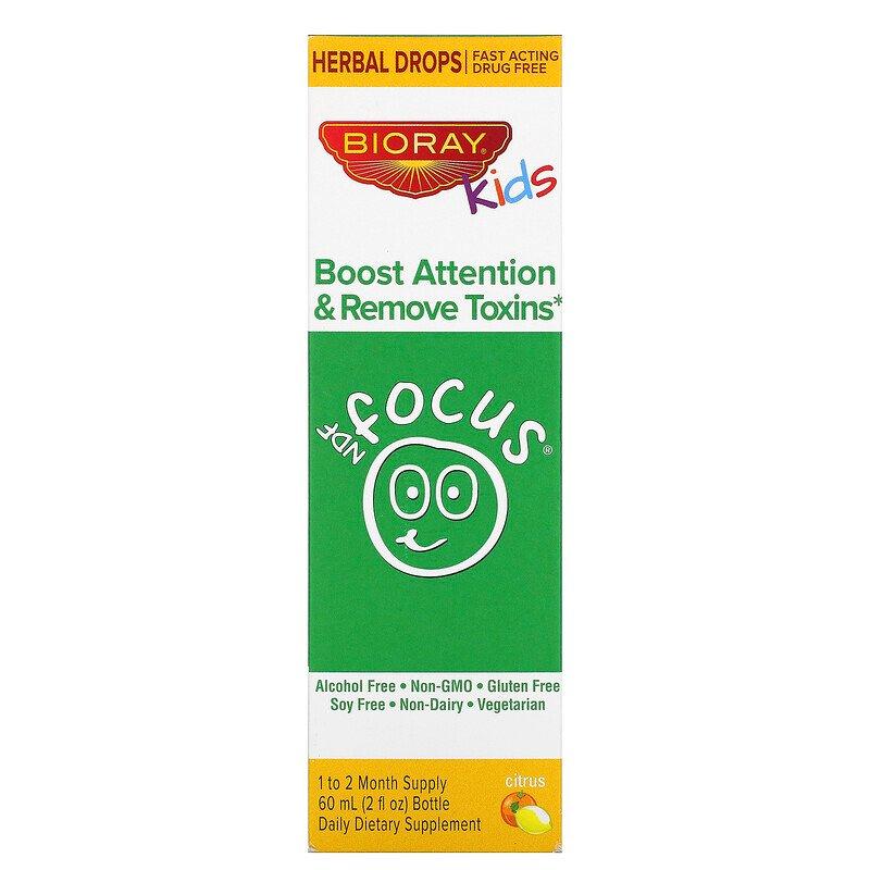 Для детей, повышение внимания и выведение токсинов, цитрусовый вкус, NDF Focus, Bioray, 60 мл (2 жидк. унции)