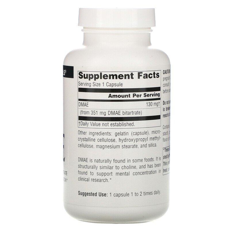 ДМАЭ, DMAE, Source Naturals, 351 мг, 200 капсул