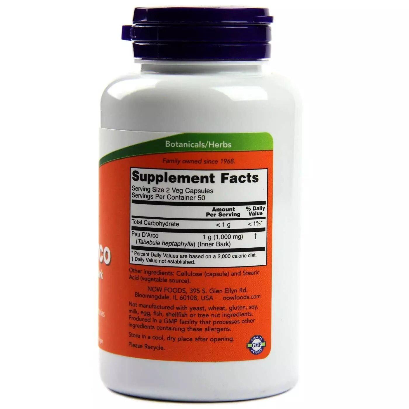Экстракт муравьиного дерева, По д'арко, Pau D' Arco, Now Foods, 500 мг, 100 капсул