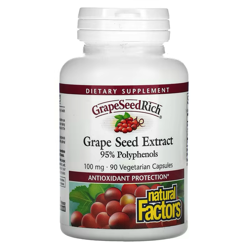 Экстракт виноградных косточек, Grape Seed Extract, Natural Factors, 100 мг, 90 вегетарианских капсул