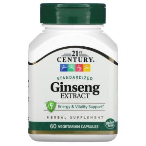 Экстракт женьшеня, Ginseng Extract, Standardized, 21st Century, 60 вегетарианских капсул