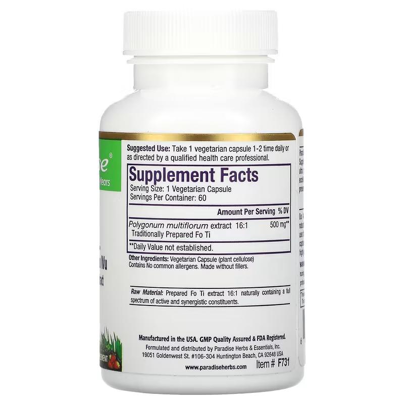 Препарат Fo Ti от Paradise Herbs — это идеальное решение для тех, кто стремится укрепить свой организм и улучшить общее состояние здоровья. Каждая вегетарианская капсула содержит тщательно отобранный экстракт Fo Ti, полученный из высококачественных трав, выращенных без применения химических удобрений и пестицидов.