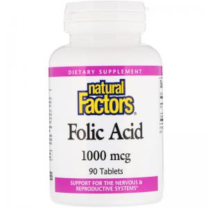 Фолиевая кислота, Folic Acid, Natural Factors, 1000 мкг, 90 таблеток