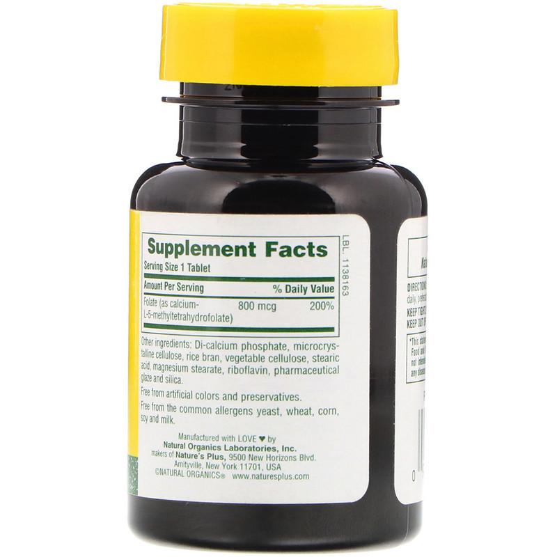 Фолиевая кислота, Folic Acid, Nature's Plus, 800 мкг, 90 таблеток