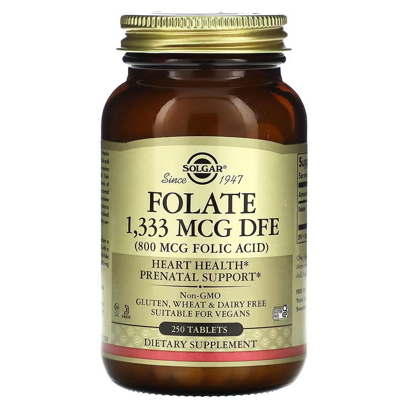 Фолат, Folate, Solgar, 800 мкг (666 мкг DFE), 250 таблеток