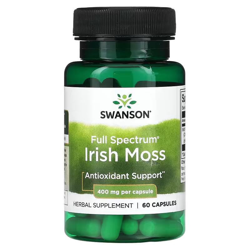 Ирландский мох от компании Swanson – это растительный источник антиоксидантов, которые борются со свободными радикалами, поддерживают здоровье иммунной системы и работу щитовидной железы. Ирландский мох, являясь разновидностью красных водорослей, богат каррагинаном, способствующим общему самочувствию. Этот продукт также поддерживает здоровье волос и кожи, а также способствует здоровому старению. Каждая капсула содержит 400 мг ирландского мха, что позволяет получить все его преимущества без какого-либо вкуса.