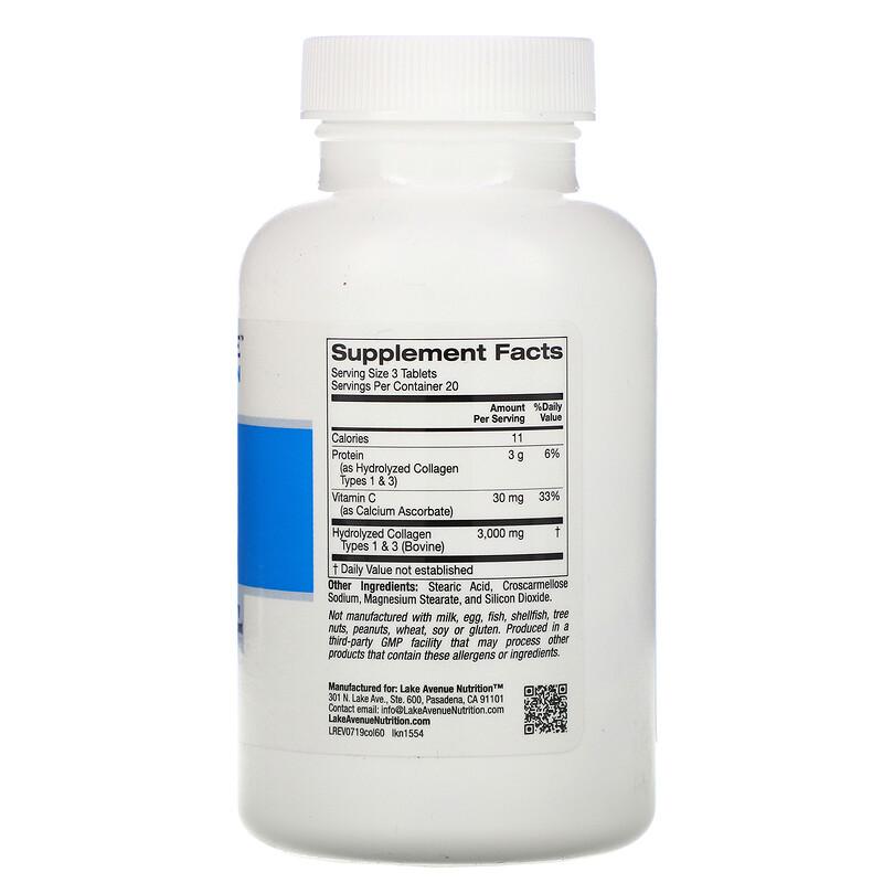 Гидролизованный коллаген типа 1 и 3, Lake Avenue Nutrition, 1000 мг, 60 таблеток