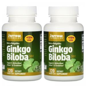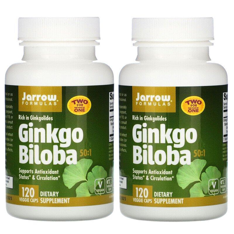 Гинкго Билоба, Ginkgo Biloba, Jarrow Formulas, 50:1, 2 флакона, 120 растительных капсул в каждом