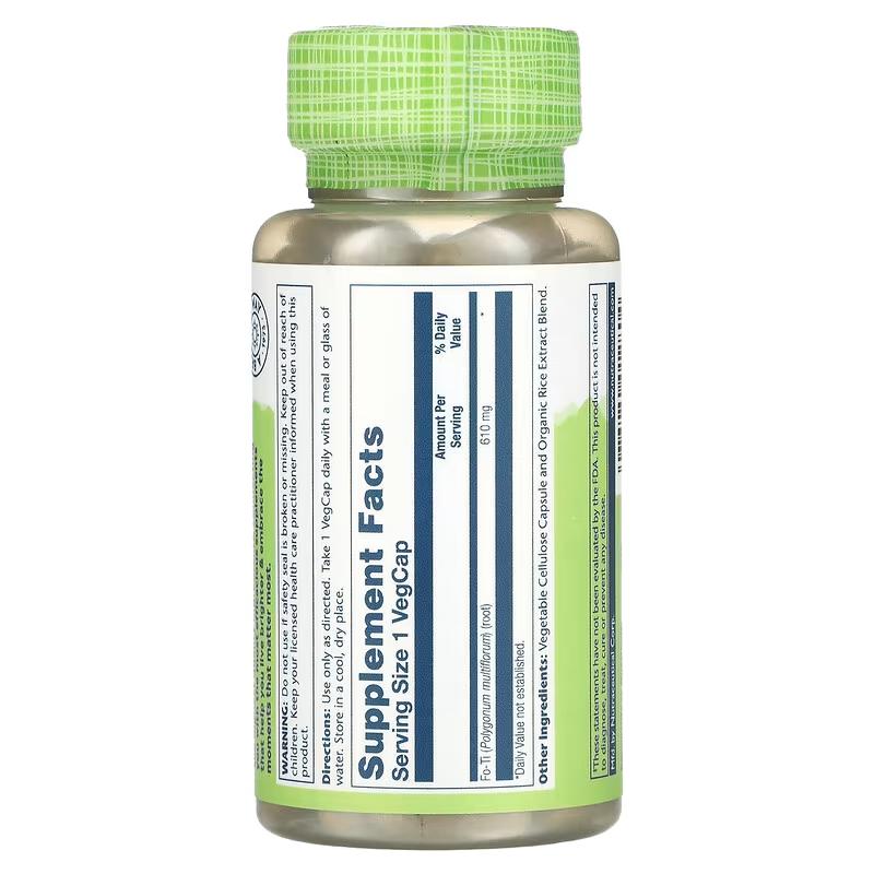 Горец многоцветковый, Fo-Ti He Shou-Wu, Solaray, 610 мг, 100 вегетарианских капсул