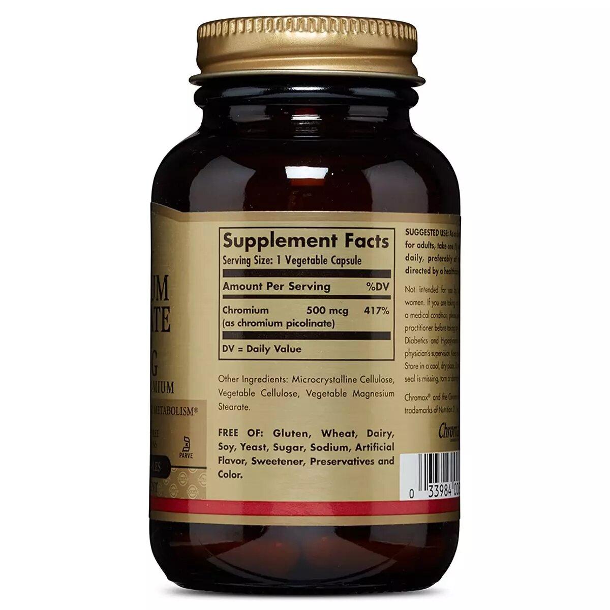 Хром Пиколинат, Chromium Picolinate, Solgar, 500 мкг, 60 капсул