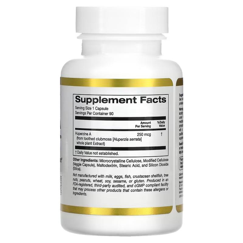 Гуперзин А, Huperzine A, California Gold Nutrition, 250 мкг, 90 растительных капсул