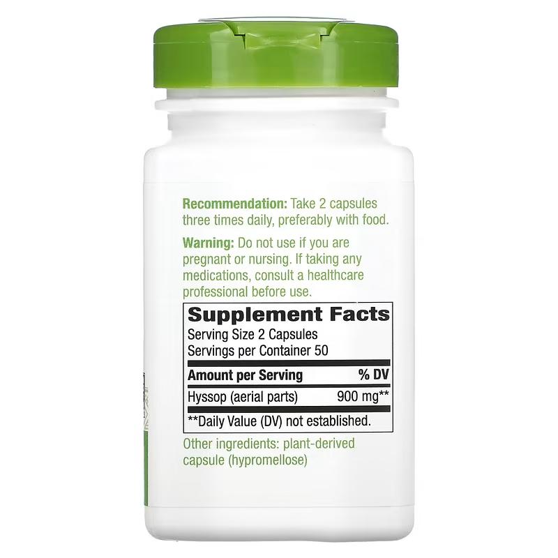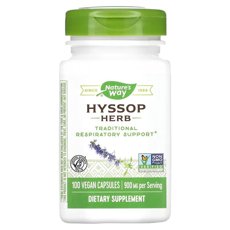 Иссоп херб, Hyssop Herb, Nature's Way, 450 мг, 100 веганских капсул