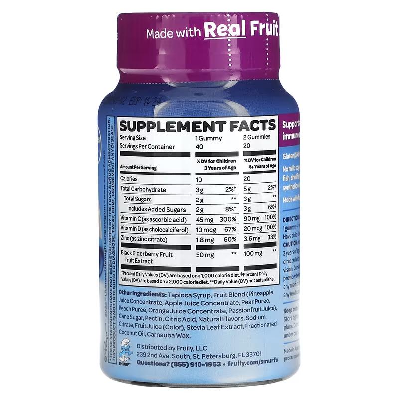 Smurfs – это уникальная диетическая добавка, изготовленная из настоящего фруктового сока и пюре, разработанная врачами для поддержания здоровья вашего ребенка. Обогащенная экстрактом бузины, цинком, витаминами C и D, эта добавка эффективно поддерживает иммунную систему малыша. За счет интересной формы, деткам будет намного проще упореблять эти витамины.