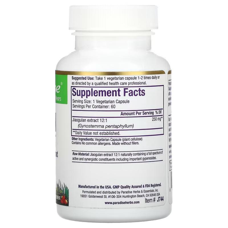 Гиностемма, Jiaogulan, Paradise Herbs, 60 вегетарианских капсул