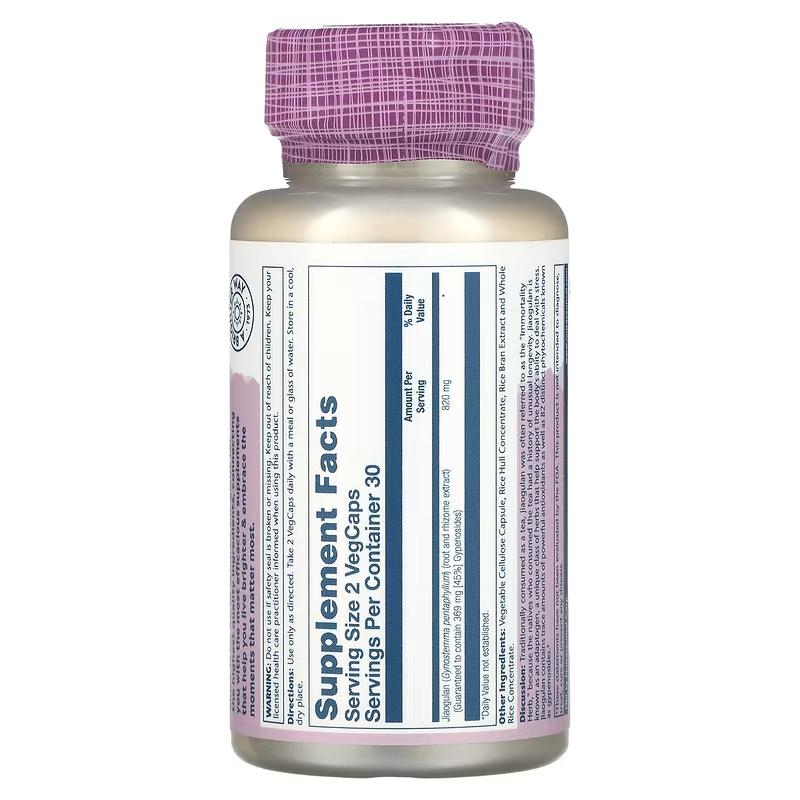 Экстракт корня гиностеммы, Jiaogulan, Solaray, 410 мг, 60 растительных капсул