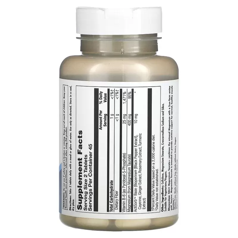Таурат магния компании KAL производится посредством реакции минерального магния с аминокислотой в свободном виде таурином на предприятии производителя. С помощью подобного кропотливого процесса компанией достигается магний наилучшего качества, который отлично воспринимается организмом. В пищевой добавке содержится 400 мг магния на одну единицу препарата.