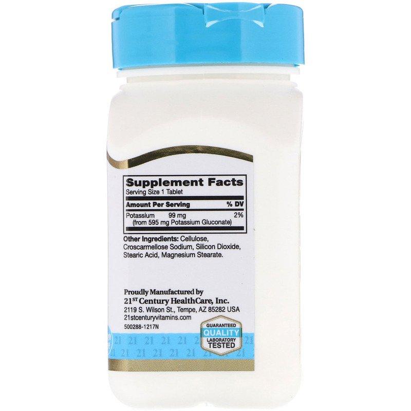 Калий, Potassium Gluconate, 21st Century, 595 мг, 110 таблеток