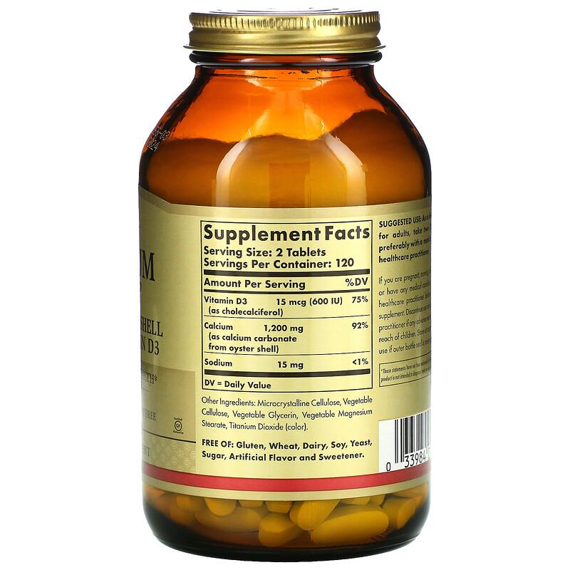 | Calcium (as calcium carbonate from oyster shell) | 1200 mg | 92% |