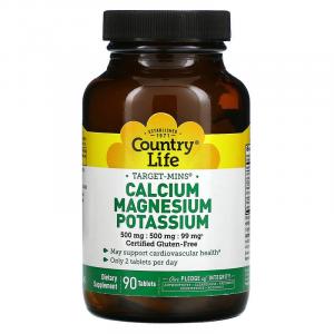 Кальций магний калий, Target-Mins, Calcium Magnesium Potassium, Country Life, 90 таблеток