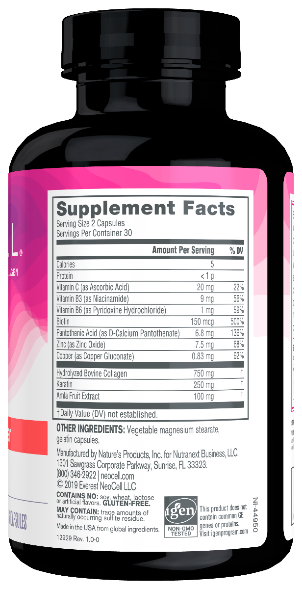 - Биоактивный Neocell Collagen – структурный компонент для поддержания здоровья не только волос, но и ногтей и кожи. NeoCell Коллаген гидролизован для предельной биодоступности.