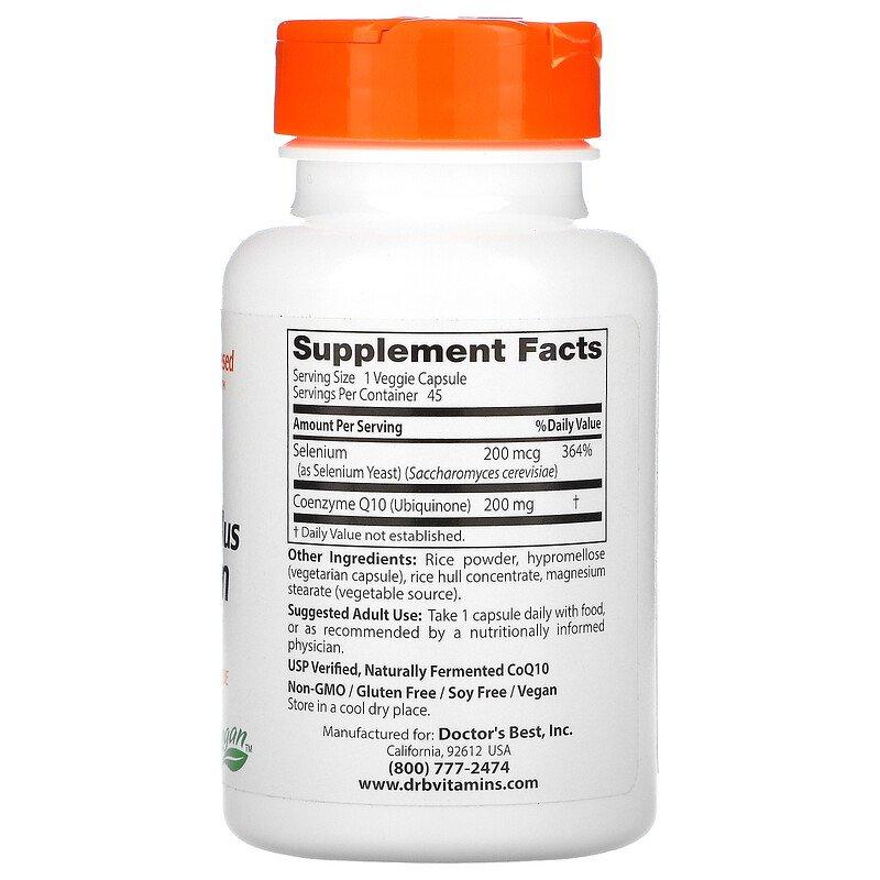 Коэнзим Q10 плюс селен и дрожжи, CoQ10 Plus Selenium Yeast, Doctor's Best, 45 вегетарианских капсул