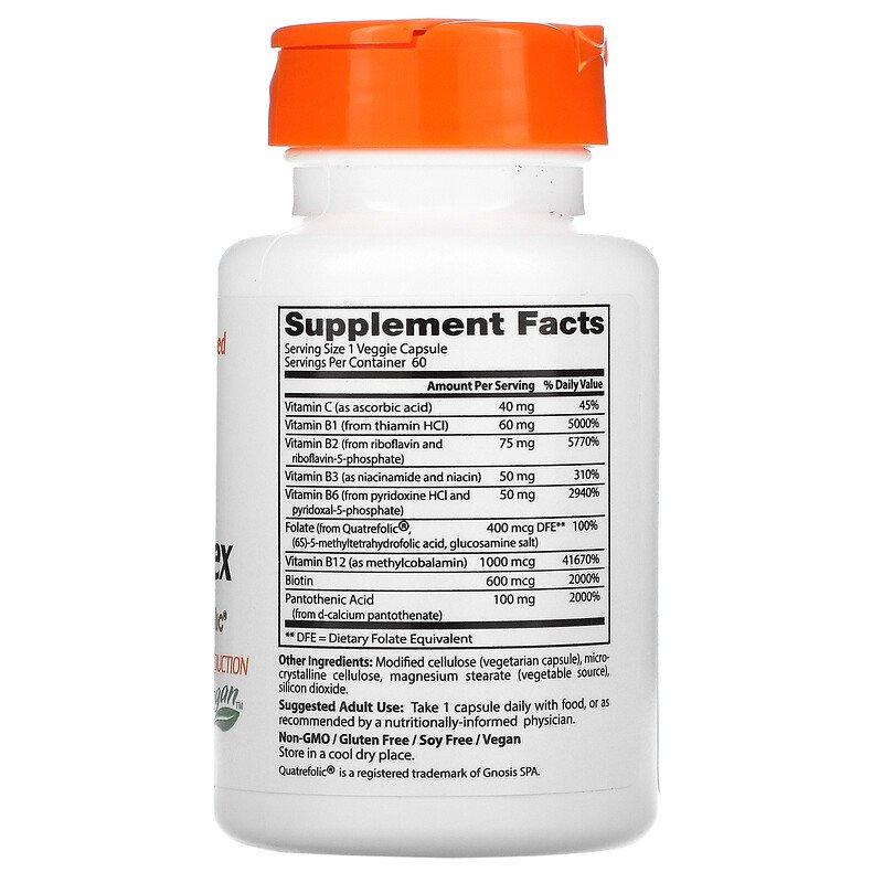 Комплекс активных витаминов группы B с Quatrefolic, B Complex, Doctor's Best, 60 капсул