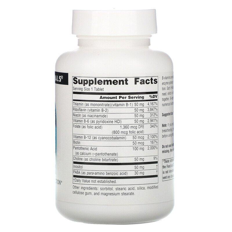 Комплекс B-50, B-50 Complex, Source Naturals, 50 мг, 100 таблеток