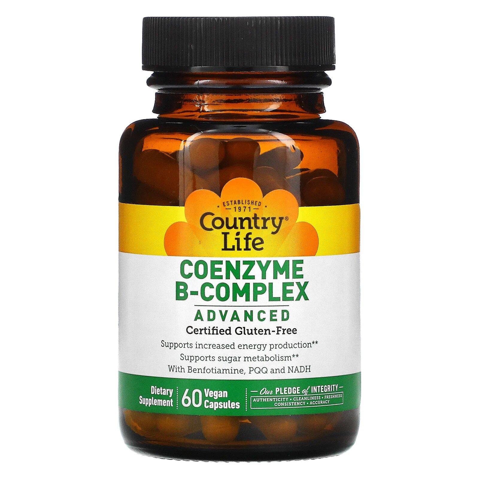 Комплекс коэнзимов группы B, Coenzyme B-Complex Advanced, Country Life, 60 веганских капсул
