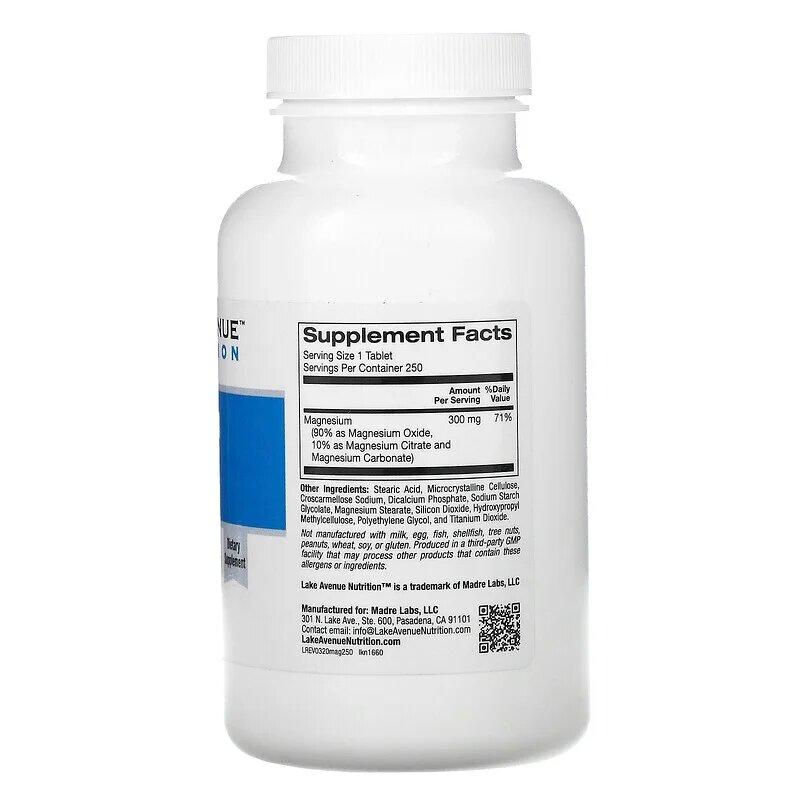 Комплекс магния, Magnesium Complex, Lake Avenue Nutrition, 300 мг, 250 таблеток
