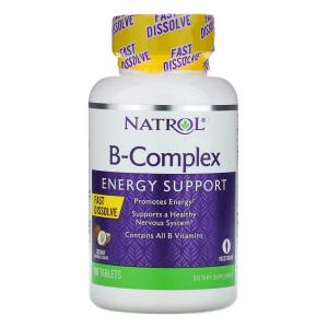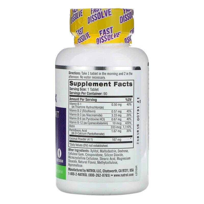 Комплекс витаминов группы B, быстрорастворимые, натуральный кокосовый вкус, B-Complex, Natrol, 90 таблеток