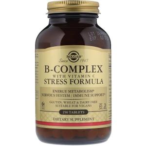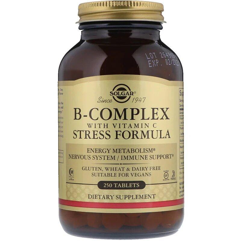 Комплекс витаминов В с витамином C, B-Complex with Vitamin C, Solgar, стресс формула, 250 таблеток