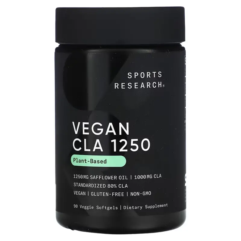 Конъюгированная линолевая кислота, Vegan CLA 1250, Sports Research, веган, 1250 мг, 90 вегетарианских гелевых капсул