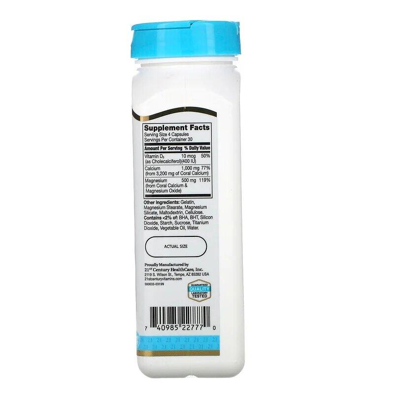 Коралловый кальций от 21st Century в своем составе имеет магний с кальцием в самых лучших пропорциях — 2:1. Кальций — важный микроэлемент, который укрепляет кости, способствует быстрому заживлению растянутых мышц, сухожилий, ускоряет процессы срастания переломов, благотворно влияет на нервную систему. Его употребляют для лечения, а также в качестве профилактики остеопороза. Препарат являет собой экологически безопасный и очень полезный продукт, в который входит 72 микроэлемента, без которых организм не сможет быть здоровым и правильно функционировать.
