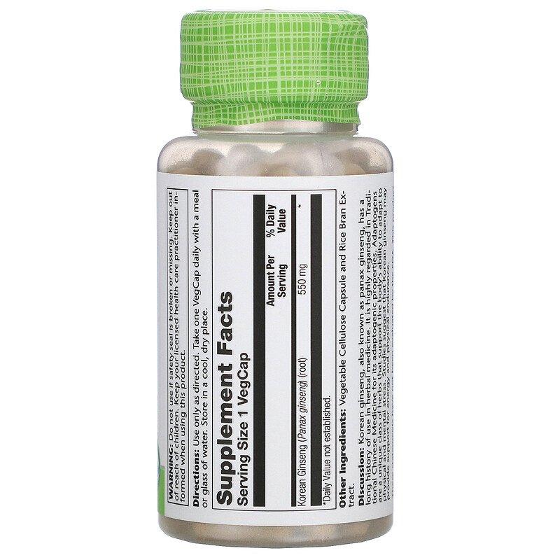 Корейский женьшень, Korean Ginseng, Solaray, 550 мг, 100 вегетарианских капсул